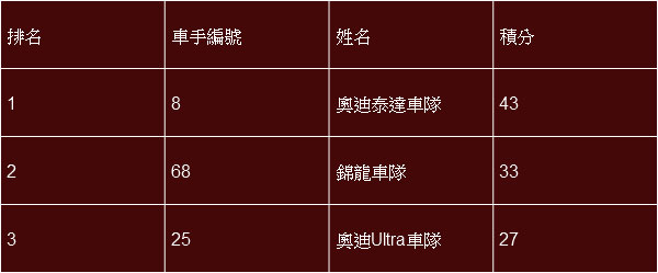 「這項賽事具有很高的水準,有很多優秀的車手參加。對於結果我很滿意,感謝奧迪可以給我這樣好的機會參與到比賽中來」,本場冠軍安德列·庫托在賽後表示。