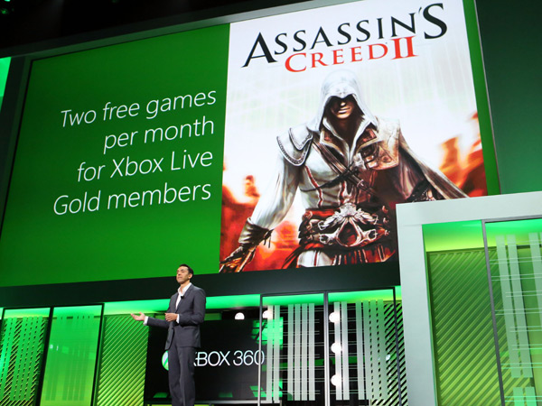 微軟互動娛樂業務部行銷策略副總裁Yusuf Mehdi分享自2013/7/1起至2013/12/31止Xbox Live金會員每月都將免費獲得兩款Xbox 360遊戲,其中包括Halo 3《最後一戰 3》和Assassin’s Creed II《刺客教條2》等熱門大作。