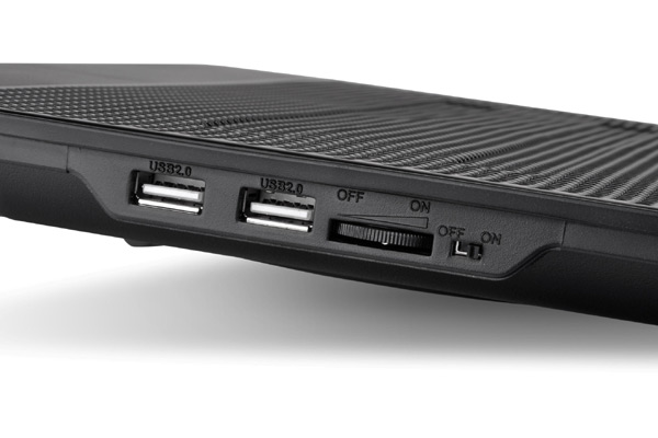 曜越Massive 14²筆電散熱器機身搭配二個USB2.0連接端子以支援擴充裝置。