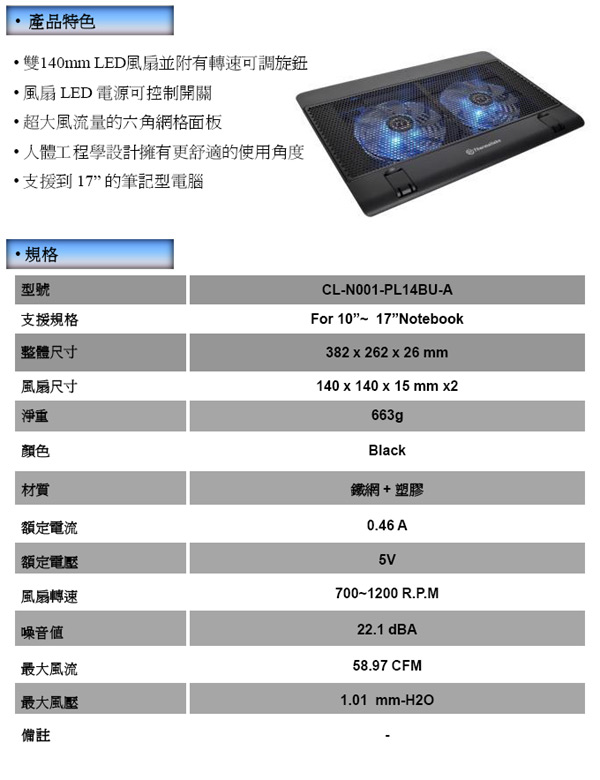 欲知更多曜越Massive 14²筆電散熱器相關資訊,請參考:http://www.thermaltake.com.tw/products-model.aspx?id=C_00002117