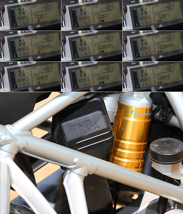 不僅如此,整合了BMW Motorrad過去90年的造車經驗,加上於四輪領域的電子技術,全新R1200 GS有著五種騎乘模式,精心設計而出的Rain雨天、Road一般道路、Dynamic跑車、Enduro輕度越野和Enduro Pro重度越野等分類,讓駕駛只要輕鬆切換,就可讓R1200 GS於不同道路上展現最適宜的動力輸出表情;Dynamic ESA 動態電子避震器,還可以一般道路(個人騎乘、個人帶行李、二人騎乘) 、(軟、一般、硬),Enduro 與Enduro Pro(軟、硬)等多種組合,搭配出多達15種的設定,這聰明系統的加入,展現出科技的成就,不減R1200 GS原有的硬漢個性,更添增其細膩的一面,如果你跟隨R1200 GS一路走來,可以發現其站在原有GS精神的肩膀上,不斷精益求精的精神,且不離初衷的造車堅持,相信就是車迷一路以來不離不棄的關鍵。