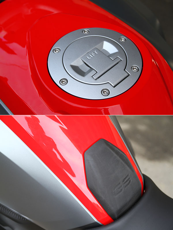 油箱末端有著橡膠墊,增加對騎士的保護性。