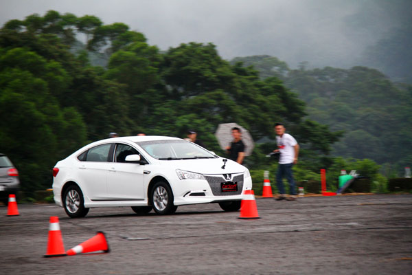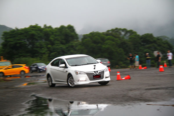 在此之前,Luxgen為了凸顯Luxgen5 Sedan 車系的優異操控設定,接連在龍潭樂活賽車場舉辦媒體試駕活動,展現強烈的信心;在本次的集評中,Luxgen5 Sedan M+ 5MT不僅是唯一的國產車,也是唯一採房車設定與重輛馬力比最高的一款,整體成績自然與其他參與的車款有點落差,不過整體差距都還在約兩秒內,最佳成績為35.9秒,甚至與Subaru BRZ相當,算是在可以接受範圍內,而且比較四位編輯的成績,彼此間的落差也最小,經過編輯部事後討論,原因為Sedan5也是所有車款中,唯一採用電子手煞車系統的一款,相較於208 VTi與Focus ST兩款前驅車,我們都輔以手煞車控制車輛,在Luxgen5 Sedan M+上少了控制手煞車的不安定因素,使得大家只能專注於油門與方向盤的控制上,這也讓整體成績最為平均,展現它容易上手的一面。不過,Luxgen5 Sedan M+所配置的可變齒比轉向機構,在面對金卡納連續快速轉向的考驗時,會略為出現齒比轉換反應速度不及的情形,轉向手感在輕、重轉換間會有落差頓挫。