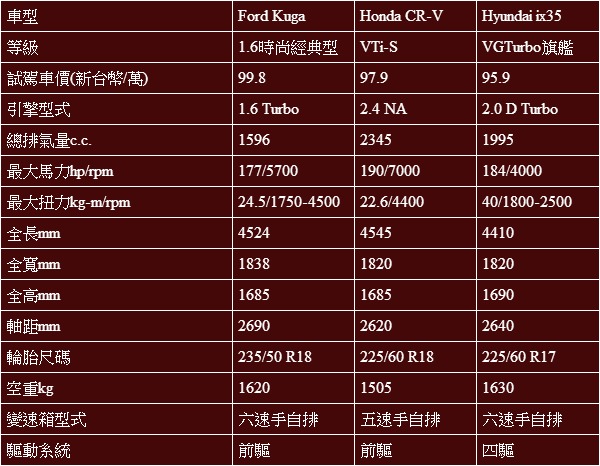延伸閱讀─【集體評比】主力交鋒 Kuga vs. CR-V vs. ix35國產百萬SUV雄師對抗 ─ 同級對手篇