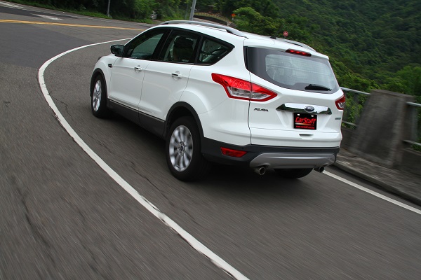 起步瞬間,Kuga的前驅動輪因為龐大扭力打滑其實頗為嚴重,不過因此帶出的速度頗為機敏,並不會感到過多的遲滯或猶疑,加速的延續性也不錯,配上六速自排的Kuga,就算滿載上坡依然輕鬆愉快。而當車開始丟入第一個彎,很明顯能夠感受到Kuga的側傾以SUV來說相當輕微,盡管重量高出原本空車太多,Kuga在彎中的動態依舊相當容易掌控,感覺得出循跡性格十足安定,四條胎只要速度不過頭幾乎永遠都會緊緊抓住路面,不太會有蠢蠢欲動的跡象,懸吊的支撐性與回正速度都有著水準以上的表現,若不是坐姿較高,不然恍神間還真會以為自己正在駕駛一輛歐系掀背車。
