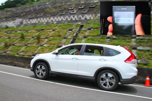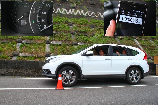 改以手排模式測試,CR-V依舊因為加速與底盤的劣勢,只跑出56.6秒時間,比其他兩車的自排模式都還慢上一秒有餘。