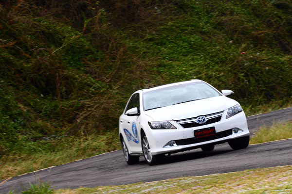 本次外卡挑戰的Toyota Camry Hybrid G,在國產中大型房車市場中打遍敵手,甚至向上危脅到進口中大型房車,最大的特色就是它所搭載的油電複合動力系統,該具複合動力系統是有一具2.5升汽油引擎加上電動馬達所組成,其中它不僅引擎排氣量為本次集評最大的,再加上電動馬達後,綜效馬力為205ps,也是本次所有車型中最大的一款,變速系統則搭配CVT無段變速系統,整體配置完全是以節能為依歸,因此,在操控面上Camry Hybrid G自然就是最吃虧的一款。