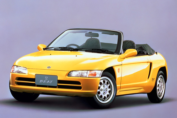 Honda Beat(1991-1996)採Roadster設定,0.65升直列三缸高轉速自然進氣引擎也能擁有64hp馬力,生涯銷售量33600輛。