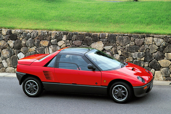 Mazda AZ-1(1991-1995)擁有單體車架、鷗翼車門與玻璃纖維車殼,MR配置的0.65升三缸渦輪增壓引擎擁有64hp的最大馬力,生涯銷售量4392輛。