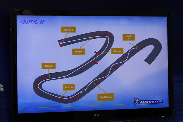 測試賽道的六個彎道中,除了最高可至80km/h的直線路段,其餘包含刻意擺設的繞錐路線在內,主辦單位刻意要求了最高僅60km/h的體驗時速。