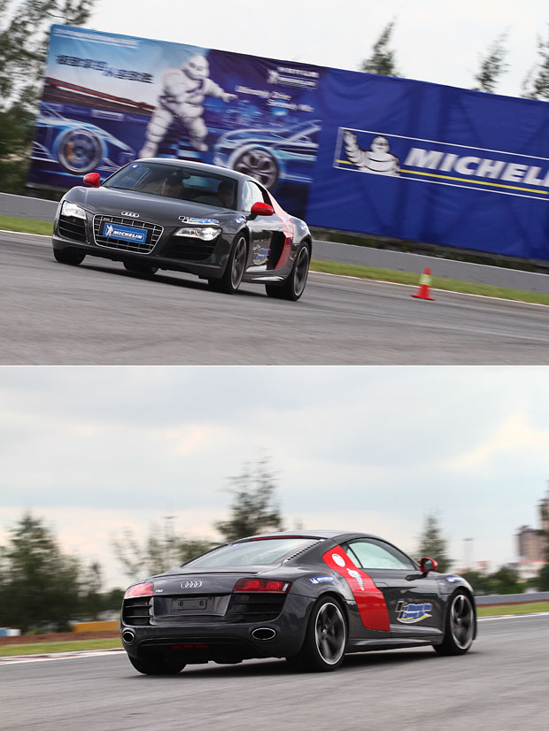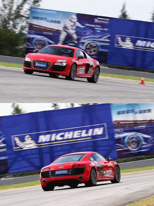 使用Pilot Sport Cup 2的R8 V10有著極優異的循跡性,輪胎的抓地力高於當時場地設計的車輛與輪胎極限許多。