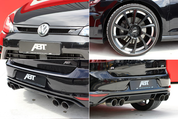 ABT Golf VII R擁有高品質的鑲嵌式外觀套件組,讓這部車與一般原裝的Golf R做出區隔,比方說,有著與車身同色烤漆的ABT水箱護罩、以及合適的頭燈蓋等,大型的側裙組,則向其他車警示「有快車接近」,而高低可調的ABT懸吊套件組,則讓Golf R緊附於行駛路線上,即便在高速狀態下亦然,若駕駛人想要向其他車主展示ABT Golf VII R的美臀,那麼也可毫不費力地駛向其他車輛前方。
