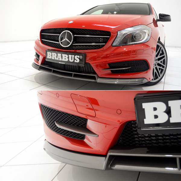 Brabus前保桿下擾流是專為附設於AMG Sport前保桿所設計,它使A-Class更具有動感,但這並不是全部:此擾流翼為經過風洞測試所設計,並可抵銷前輪軸在高速下所產生的舉升力;而同樣能減少後軸升力的車尾擾流套件,目前則仍在開發中。
