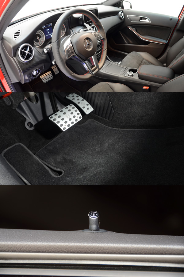 Brabus針對全新A-Class內裝也提供多樣的升級配件,包括有含Brabus商標在內的雙色不鏽鋼儀表面板、霧面電鍍的Brabus鋁合金踏板組、與車門鎖壓銷等。