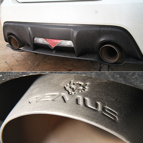 Remus則針對Impreza WRX STi打造左右四出式排氣尾管設計,尾飾管的末端更採用碳纖維外觀裝飾,並飾以Remus與火狐狸招牌,低調展現質感。
