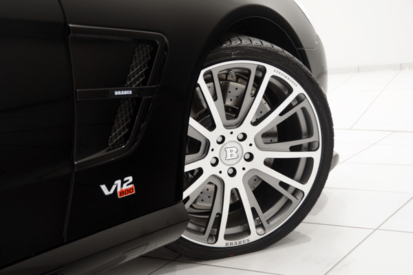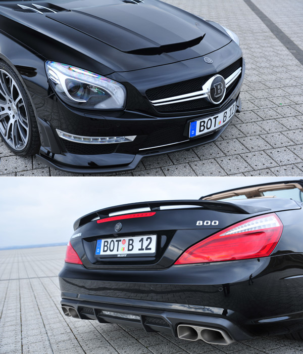 BRABUS嵌入式前擾流翼安裝於前保桿下方,除了使BRABUS 800 Roadster的視覺更具運動化風格之外,還能有效抑制前軸於高速狀態下的揚升力;而車側氣流導口處的BRABUS套件,更與SL 65 AMG強烈的車頭視覺相得益彰。車側的客製化配件,包括有前葉子板上的氣流導口、以及車側側裙等,而為達成理想、且平衡的空力效能,BRABUS 800 Roadster的車尾也安裝嵌入式的後保桿分流器。
