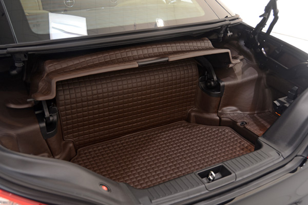 BRABUS內裝工坊以柔軟、耐用性兼具的BRABUS Mastik皮革、與Alcantara麂皮組織出精美的BRABUS專屬內裝,而即將現身日內瓦車展的BRABUS 800 Roadster展示車,還將展現其車尾行李廂精細的皮革包覆工法,整個行李廂蜂巢狀紋理的縫製技術,更展現BRABUS精確無比的完裝品質。