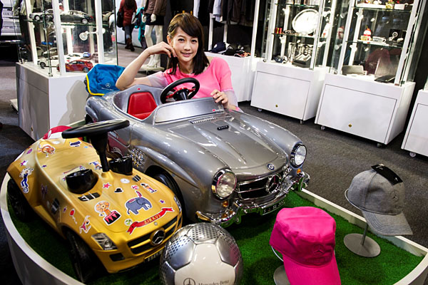活動現場展售Mercedes-Benz以及smart相關原廠精品,其中最受矚目的賓士精品為全球限量款SLS AMG Bobby-Benz學步車,這款專為兒童打造並符合人體工學的帥氣學步車,擁有炫目的金亮配色車身、Mercedes-Benz AMG輪圈設計,並隨附替VOUGE與法國百年馬卡龍名店Ladurée操刀的插畫家Kera Till繪製的貼紙,其可愛且繽紛的卡通造型讓孩子能享受自由拼貼的樂趣。除此之外,搭配 MERCEDES-AMG PETRONAS 現役 F1 W04 賽車現身台北,推出 Lewis Hamilton 方程式紀念帽,帽簷繡有Lewis Hamilton簽名字樣,隨處展現賽車手精神。車展期間建議折扣7折。