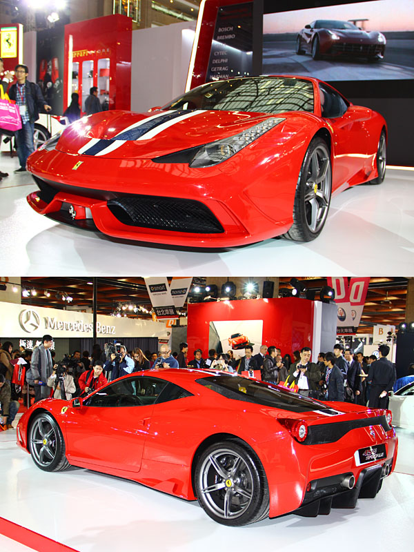 雖然被Nissan GT-R擠下了王者寶座,但在此車展中加速十傑的排行中,無疑的Ferrari是榜內的常勝軍,共有多達五輛車入選,其中排行第二、也是Ferrari入選中成績最優異的,則是選擇於台北車展首次發表的458 Speciale,這身為458車系最強悍車型的458 Speciale,更是Ferrari品牌史上最強悍的自然進氣V8引擎車款,具備605hp最大馬力外更有僅1290kg的車身重量,讓其可於3秒內完成0-100km/h加速過程,成為了車展中3秒台的加速冠軍。