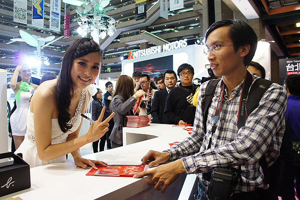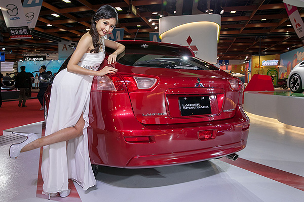 為慶祝2014年式Lancer Sportback正式到港,美背女神-恬小魚再以女神之姿親臨台北車展Mitsubishi展區。