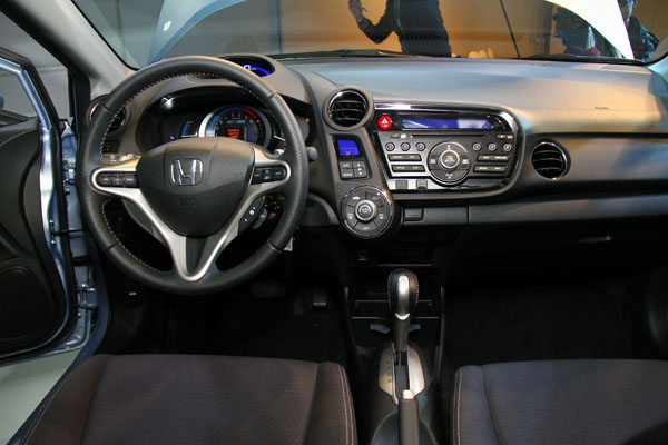 此外,以Honda一貫地「MM思想-機械空間極小化,人性空間極大化」概念,Insight Hybrid軸距長達2,550mm,車室乘坐頭部、膝部都保有餘裕空間。外觀造型上承襲最先進環保車FCX Clarity的未來設計概念,立體鍍鉻橫閘水箱罩,聯結銳利外型的投射式大燈,由葉子板向後A柱延伸至C柱一體流線造型,同時車側拉出高腰立體折線,似奔馳般的跑格運動感;車室內裝採集中與簡單的設計原則,駕駛座前方雙層儀表板(MULTIPLEX meter)配置,方便視認行駛中資訊,方向盤配備音響快撥鍵、定速巡航設定鍵與i-MIS多功能資訊選擇鍵,同時將主要ECON功能啟閉、恆溫空調控制及音響系統功能都集中在駕駛座的兩側,提供駕駛者瞬間辨識、直覺操作的駕駛環境,相對副駕駛區與整體車室空間則是另一種簡單俐落的空間設計感。