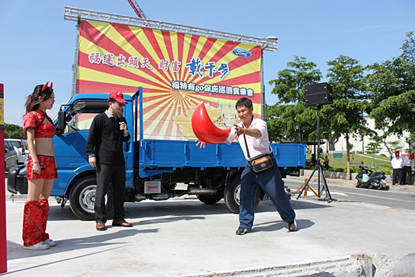 「福運出頭天、財富載卡多!」福特有GO保庇巡迴賞車會活動自5月4日起在全台灣各縣市所精選的11個傳統市場開始推動,現場除了備有精采的舞台活動之外,4位俏麗的福特Show Girl也會擔任掃街先鋒,直接進入到市場內與每一位小頭家們問候與互動,透過充滿樂趣且饒富神明庇祐意味的趣味〝搏杯(擲茭)〞活動,民眾可以獲得「大甲媽祖平安發財米」或是「大甲媽祖麵線」等不同精緻伴手禮,現場訂購新車者,在成交後更能獲得「有GO吉利琉璃金牌」乙面!頭家們,想要讓生意蒸蒸日上、財源滾滾嗎?想要添購/換購一輛省油耐操又夠力的事業用車嗎?Ford Econovan載卡多車系絕對是最適合您的打拼好夥伴!