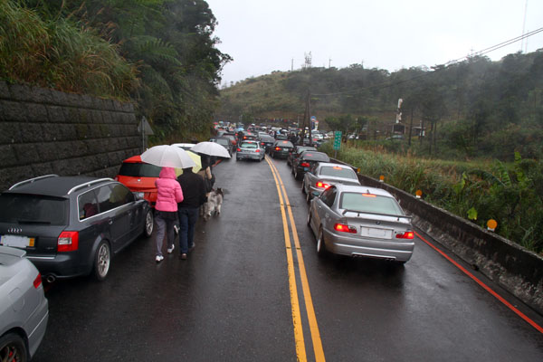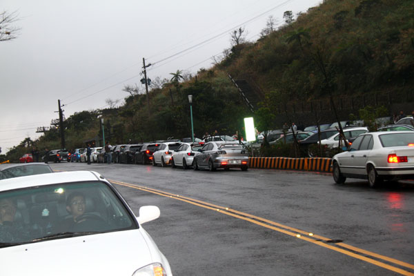 紀念碑公園停車場停滿後,外頭還有綿延近一公里的車陣無法進場。