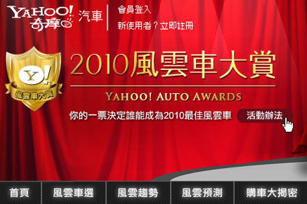 Yahoo!奇摩汽車舉辦的「Yahoo!奇摩2010風雲車大賞」,活動舉辦四週以來獲得熱烈迴響,總投票數達到約7萬7千張,以下為「2010風雲車大賞」各獎項的獲勝車款: