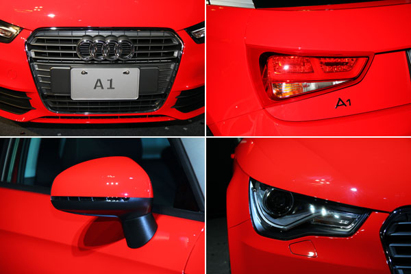 A1車頭部位以Audi家族特徵的水箱護罩與雙功能氙氣頭燈內建Audi LED日間行車照明燈(Ambition車款之標準配備)來展現視覺霸氣,流線的車側輪廓與飽滿的輪拱造型極為帥勁有型。