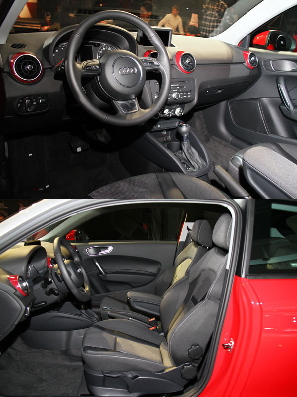座艙內部,四組圓形空調出風口來自家族化的構築元素,懸浮式中控台部分由上至下分別排列多媒體音響系統、空調系統及多組功能按鍵;駕駛介面部份,A1採用雙環式儀錶板設計,金屬飾環搭配紅針白字配色,閱讀清晰之餘並兼富性能意味,而儀錶中央的多功能行車電腦可提供多項旅程資訊,車主並可就多功能方向盤進行直覺化的操作。