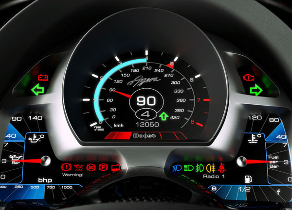 Koenigsegg Agera車室內延續過往的極簡風格,透過科技的輔助與整合大量簡化的車內儀表與按鍵的數目。