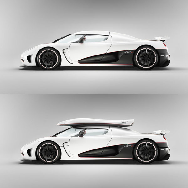 別出心裁的,在展出Agera R之際,Koenigsegg還特別展出與知名車頂行李箱製造商Thule合作打造的專屬車頂行李箱,完全由碳纖維材質打造,符合Koenigsegg一貫的輕量造車思維,且經由多次的風洞測試與模擬,安裝此車頂行李箱後,Agera R還可保有達300km/h的極速表現,也創下了車頂行李箱的安裝紀錄。