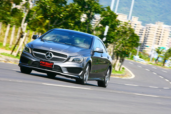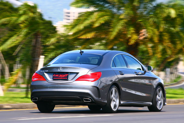 我必須說,今天試駕的CLA 250 Sport,真的是輛很〝壞〞的車。首先,它有著很壞的外表,原本就以4 Door Coupe概念作為發想,低扁侵略的車身設計,當然給人兇狠刁蠻的第一印象,而這輛試駕車則更變本加厲,Mercedes-Benz甚至還替它加上了AMG跑車化套件,包括前後保桿與側裙、18吋雙肋鋁圈、鍍鉻單柵鑽石型水箱護罩、降低車高懸吊、前打孔碟、雙材質紅車線跑車座椅、鋁質飾板、三輻平底紅車線跑車方向盤與腳踏墊,全都是極富運動性格的AMG或性能相關部品,當然讓這輛CLA 250 Sport面目兇惡到極點。