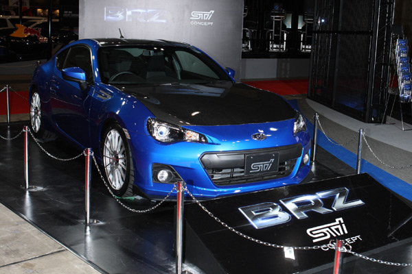 2012年Tokyo Auto Salon改裝車展上,Subaru也展出一輛名為「BRZ STI Concept」的概念車,但講白了,其實這也是一輛全車裝配STI套件的BRZ而已,引擎仍維持那具輸出200hp馬力的FA20自然進氣水平對臥四缸引擎;而車迷所關注的是:STI現在預示的這輛,到底有沒有強化動力?