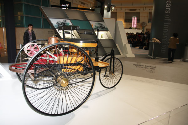 【M-Benz 125 週年亞洲巡迴展】現場展出的歷史上第一部汽車,Benz Patent Car No1. 的複刻版。