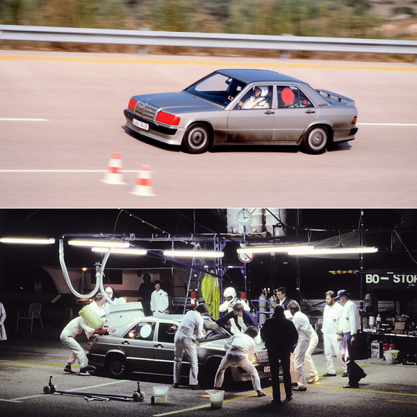 當年,Mercedes-Benz以三輛完全相同的190 E(W 201) 2.3-16,在單圈全長12.6公里的Nardo環狀賽道上進行測試,而測試結束四週之後,190 E 2.3-16市售車便於1983年IAA法蘭克福車展上正式發表。