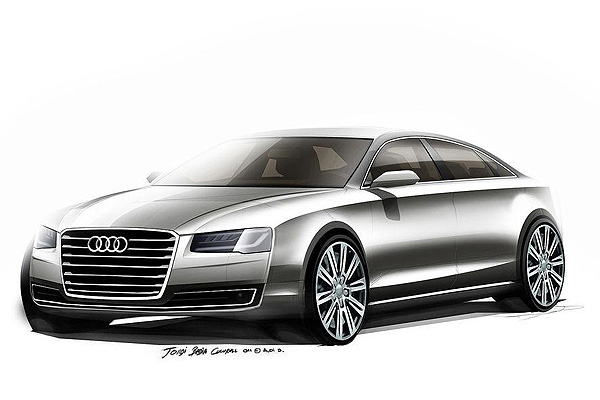在正式公布小改A8頭燈的同時,Audi也釋出部分小改A8的手繪草圖,從設計圖稿中,也能看出Audi並未大幅更動A8的車身線條與比例。小改款的幅度或許將會與A4、A5車系相近,焦點著重在車頭造型、燈組輪廓與LED照銘技術的革新,並且提升內裝質感、配備水準等面向。Audi同時表示,在9月的法蘭克福車展中,小改款A8將會正式發表亮相。