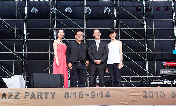 首場兩廳院夏日爵士戶外派對彩排記者會-(左起)史茵茵、黃瑞豐老師、台灣賓士轎車行銷業務副總裁司達恆、兩廳院副總監劉怡汝。