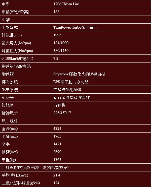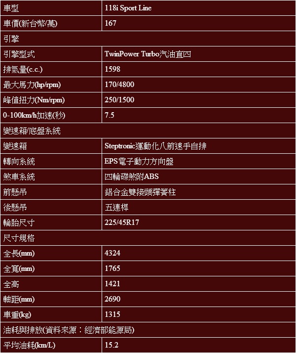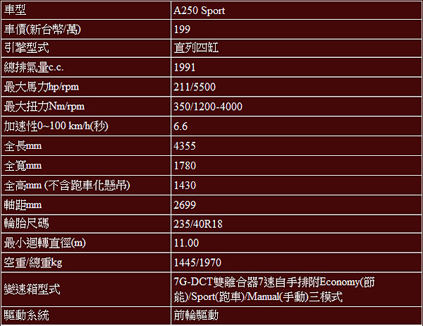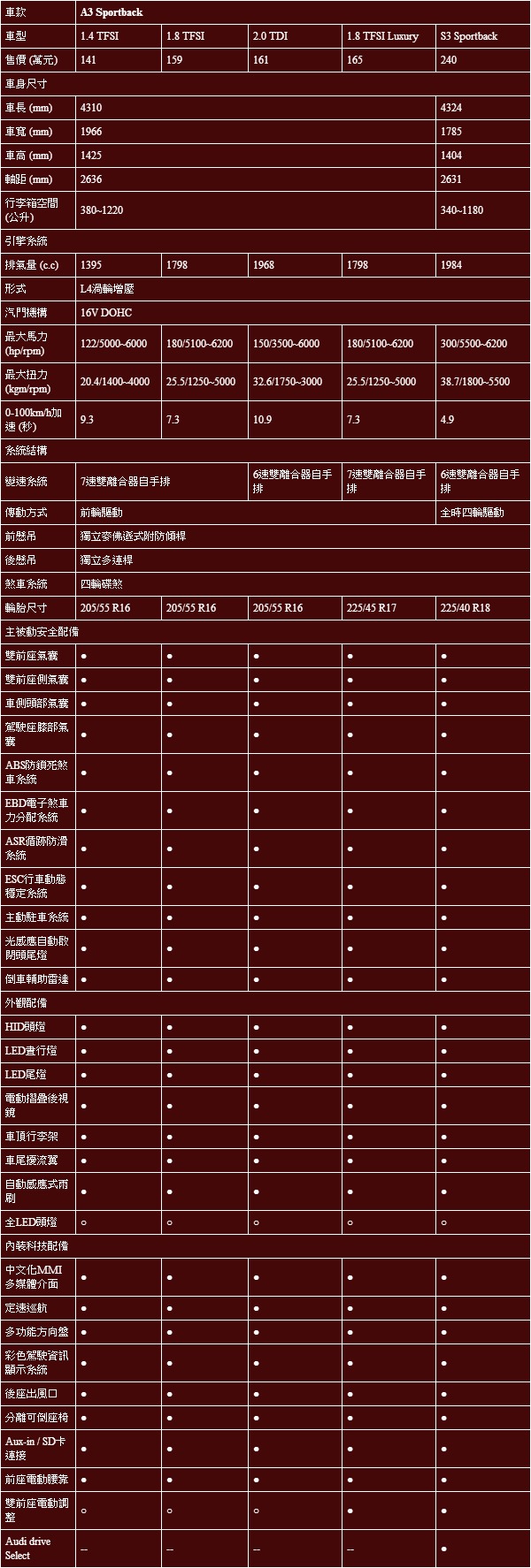 A3 Sportback基本規格表: