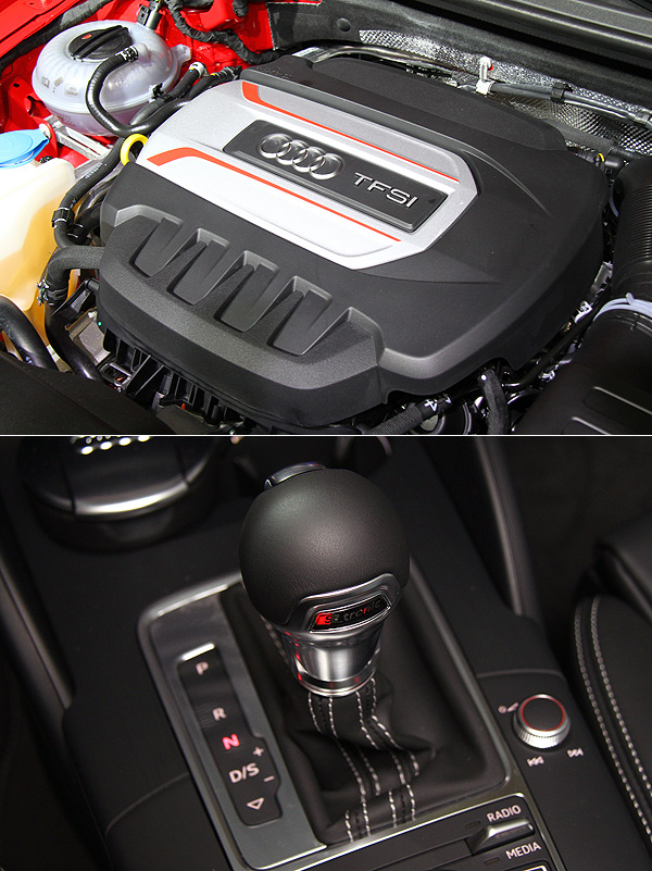 擔任S3 Sportback動力心臟者為一具擁有300hp最大馬力、38.7公斤米最大扭力的2.0 TFSI缸內直噴渦輪增壓引擎,搭配6速S tronic雙離合器自手排變速箱。