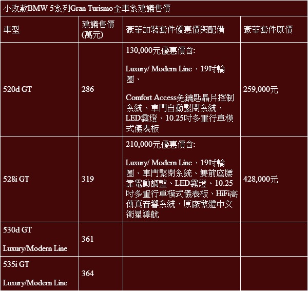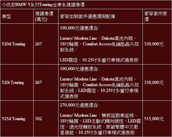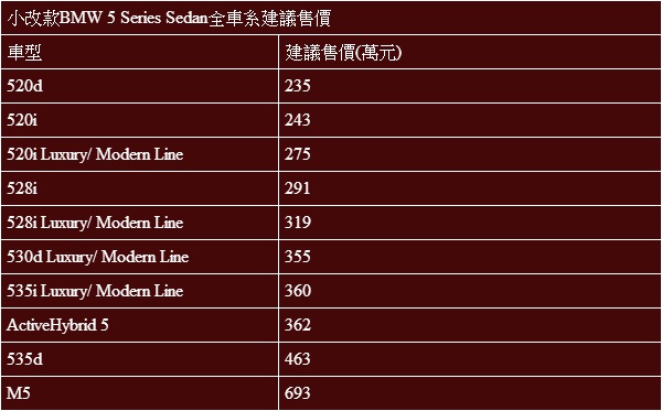 小改款BMW 5 Series全車系詳細售價與配備資料,詳見下方整理表格。