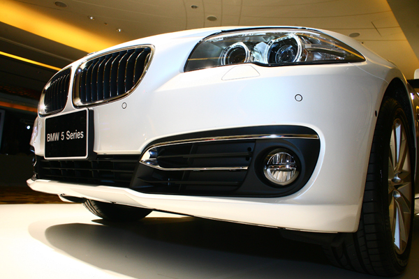 小改款BMW 5 Series Sedan、ActiveHybrid 5與Touring,擁有充滿BMW意象的長車頭、短前懸家族設計,嶄新的車頭線條讓雙腎型水箱護罩輪廓更顯突出,搭配降低高度的前氣壩與氣壩兩側C字型進氣口(Luxury Line為鍍鉻、Modern Line為霧銀處理),加上全新頭燈設計與銳利的LED燈眉(528i Luxury/Modern Line、530d Luxury/Modern Line、535i Luxury/Modern Line、535d M Sport Package Sedan與ActiveHybrid 5並標準配備LED主動式轉向頭燈),增添更多運動氣息。此外,小改款5 Series Sedan、ActiveHybrid 5、Touring的LED尾燈組也有煥然一新的面貌,而側邊方向燈改以整合於車外後視鏡上,若選擇Lines個性化式樣車款,車側銘牌則會依據Luxury Line(鍍鉻)或Modern Line(霧銀)有所變化,提供不同調性的樣貌。