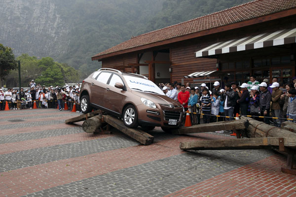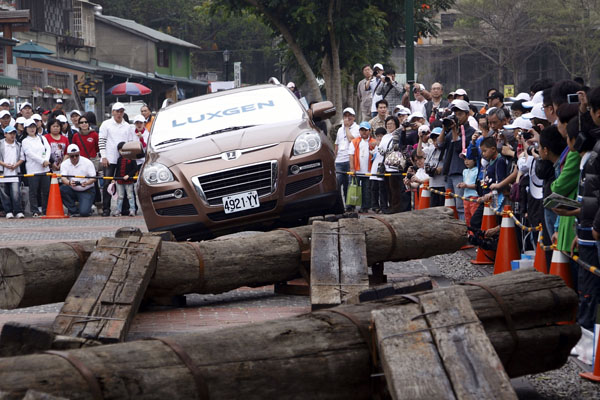 Luxgen科技體驗區車神陳和皇的精彩表演,利用越野關卡道具展現Luxgen7 SUV的剽悍實力。