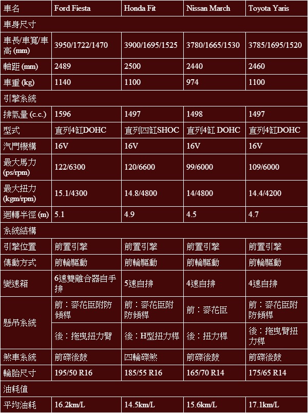 同級對手比較: