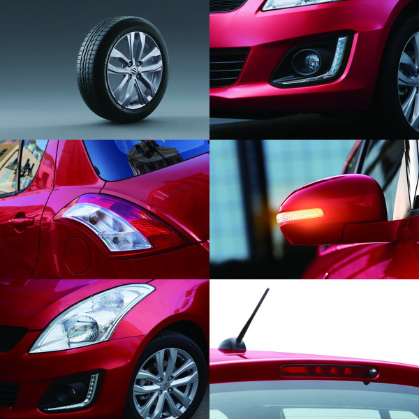 Swift輕巧又具歐風的外型,一直是國內車主熱愛的主因,2014年式的New Swift,在車頭部分做了些許調整,除了前保桿處做了些許微調外,更新增了魅力十足的日行燈(GLX車型),車頭視覺張力更強,一眼望見便讓人難以移開目光,也再次強化了白天行車的安全性;Swift在鋁圈樣式的改變也令人蠢蠢欲動,16吋五爪鋁合金輪圈,讓Swift的外型更添動感,更為流暢。
