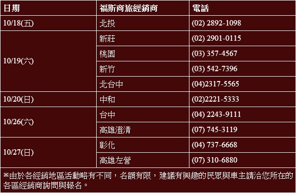 福斯商旅熱情邀請有興趣的民眾一同前來體驗傳統德式熱情的十月節文化,報名方式請洽全省各區福斯商旅展示中心,名額有限,預報從速。更多資訊可洽官方網站 www.vwcv.com.tw 或電洽0800-698-699。