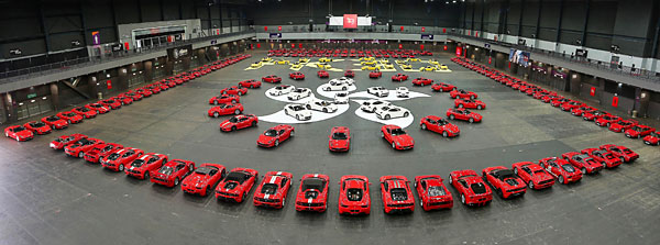 在亞洲博覽館內,當日會場內將展示超過600部Ferrari名車,車型將函蓋經典系列至現時的最新型號。其中250部紅、白、黃三色Ferrari車型將在紅色空地上排成標有紫荊花的香港特別行政區的圖案。展示的Ferrari車型更包括眾多不同的年代與領域,除所有Ferrari現有車型外,亦有經典系列的195 Inter、365 GTC、Dino等車型。當然亦不乏充滿賽車元素的客戶賽車部門車款如458 Challenge及極少在賽道外亮相的599XX和FXX Evolution。得益於香港Ferrari車主的鼎力支持,當日展示的Ferrari車輛數目將有機會打破香港單一地區集合最多Ferrari車輛的記錄。