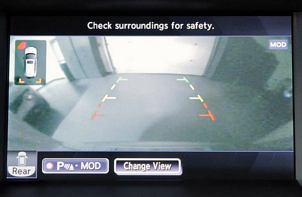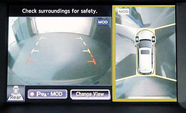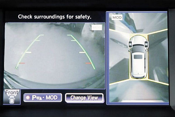 透過這些裝置於車身四周的攝影機,駕駛可以透過中控台螢幕清楚看見車身四周的影像,而不需要下車進行查看,同時也可透過中控台上的CAMERA(攝影機)按鈕,切換影像顯示的視角,或只觀看特定方向的影像,比如車身兩側。此外,也會透過紅、黃、綠顏色(由近到遠)的標線顯示車身與車身周圍物體的相對距離遠近,進一步提升行車安全。