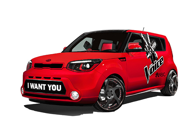 與NBC一同打造的The Voice Soul擁有鮮紅的車色,並在車測會上斗大的「The Voice」節目Logo彩繪,同時在前氣壩上打上「I Want You」字樣,鼓勵喜愛唱歌的觀眾朋友們能夠勇於表現自我。再改裝部品上,The Voice Soule換裝20吋的3片式輪圈,與鮮紅的車身做搭配。同時在後車廂植入40吋LED電視,以及安裝The Voice App的I Pas Mini與無線麥克風,可以讓有興趣參與The Voice節目的民眾現場試唱。