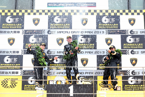 Lamborghini Blancpain Super Trofeo亞洲挑戰賽賽事負責人Cristiano Inverni:「Lamborghini Blancpain Super Trofeo亞洲挑戰賽與第60屆澳門GP同期開賽,成為了本賽季最振奮人心的巔峰對決。澳門GP為Lamborghini Blancpain Super Trofeo亞洲挑戰賽提供了難得的機會,讓參賽車手可以在世界著名的東望洋賽道上、在全球最負盛名的賽車活動中獲得寶貴而豐富的競賽經驗。在今天的比賽中,我們能看到參賽車手將前五站中積累的駕控經驗與競賽策略綜合運用,全力迎戰最後一役;而他們在整個賽季中所展現的熱情,正是2013 Lamborghini Blancpain Super Trofeo亞洲挑戰賽成功的關鍵因素。這也必將為下一賽季的Lamborghini Blancpain Super Trofeo亞洲挑戰賽的成功奠定堅實的基礎。」